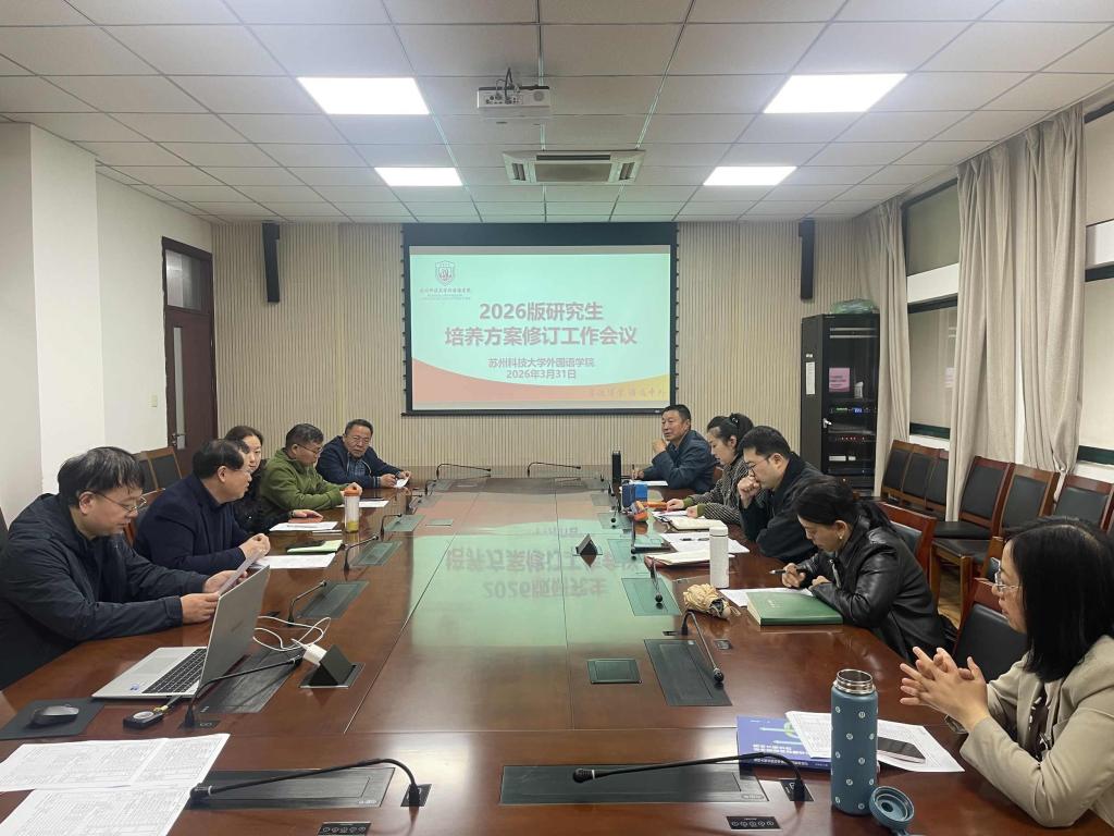 3月31日,外国语学院召开 2026 版研究生培养方案修订工作会议,统筹推进研究生教育教学改革,进一步优化人才培养体系。会议由副院长郭雯主持,院长綦亮、副院长王妍出席,学科教学(英语)专业负责人张现荣、英语笔译专业负责人张生祥及全体硕士生导师参加会议。