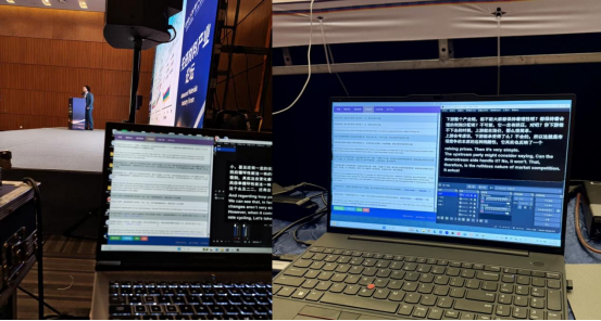 我院研究生主要承担大会各会场AI同声传译字幕系统的辅助运行与实时优化任务。同学们依托TTV AI(译界通公司自主研发平台),对AI同传系统进行现场操作与调试,实时监测字幕生成情况,对识别与翻译结果进行必要修订,确保中英文字幕输出的准确性、连贯性与稳定性。