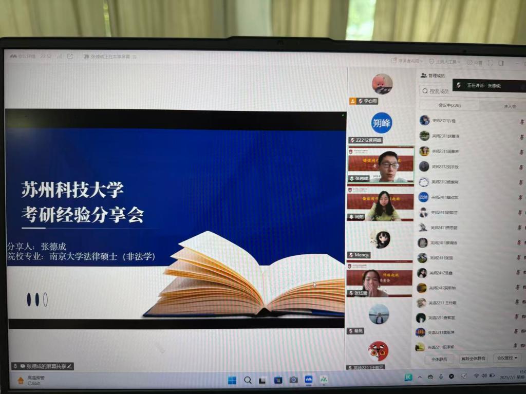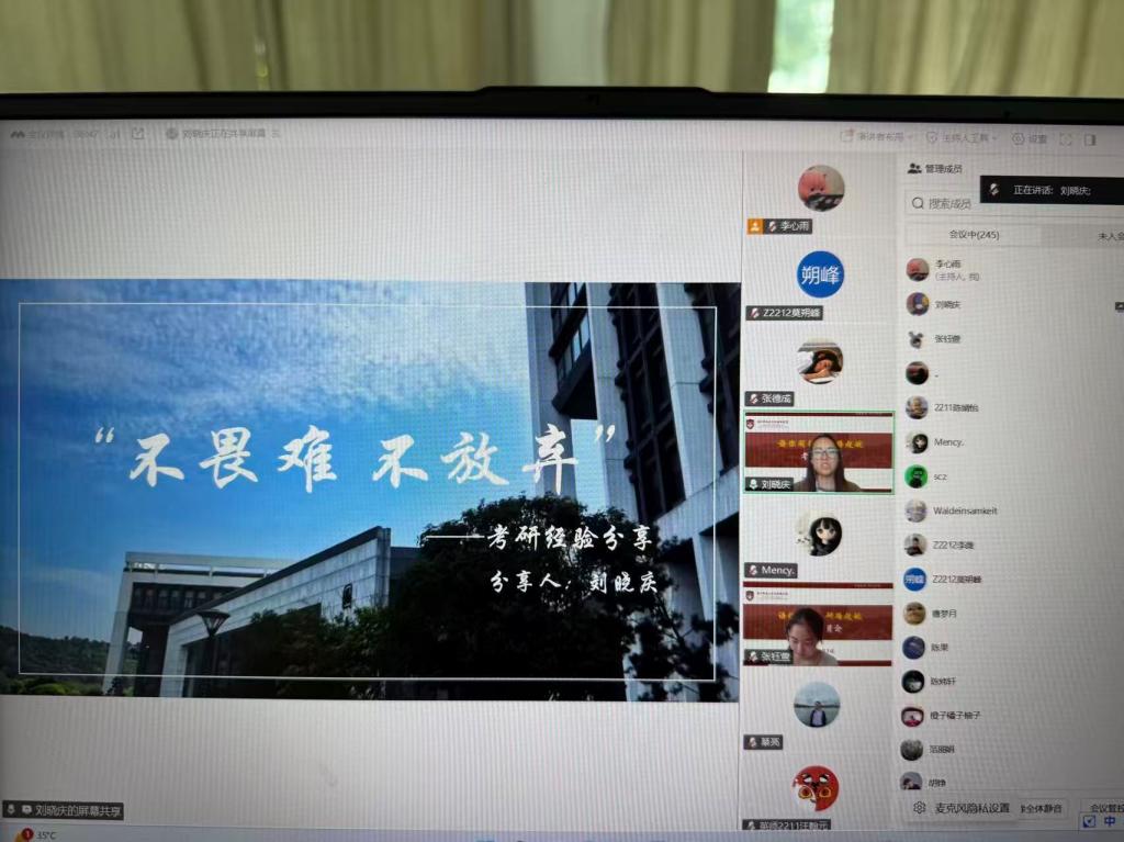 7 月 7 日下午,外国语学院通过腾讯会议举办考研动员会暨经验分享会,旨在为学子明确备考方向、优化复习策略。学院党委副书记兼副院长周茹、辅导员李心雨主持会议,两百余名学子云端参与。